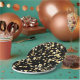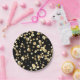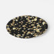 Prato De Papel bolinhas Douradas sobre fundo preto.
