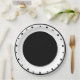 Bolinhas pretas contra fundo branco. Padrão geométrico moderno com grande círculo preto no centro. Designs originais © TamiraZDesign.
