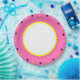 Diversas bolinhas amarelas e pretas contra borda rosa brilhante. Círculo central branco esboçado em amarelo brilhante. Padrão geométrico brilhante. Design original © TamiraZDesign.