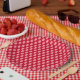 Prato De Papel Bolinhas rosa em vermelho