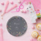 Este clássico prato de bolo floral azul selvagem é perfeito para uma recepção de casamento rústica. A design apresenta flores silvestres brancas, amarelas, roxas e brancas com folhagem em fundo de rosa e aquarela verde. Faça-o por você adicionando os nomes da noiva, noiva e data de casamento.