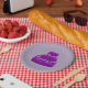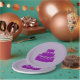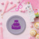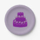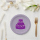 Um bonito bolo de casamento roxo de três camadas com sotaques florais. Adicione um nome ou as palavras, chá de panela ou casamento, se desejar.