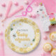 Placas de papel de chá de fraldas de abelhas com pente de mel, abelha de mel e design de margarida.