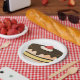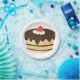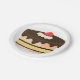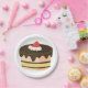 Um bolo com morango em cima. Este design parece realmente eficaz nestas placas de papel