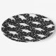 Planejar uma festa de formatura? Elevem a celebração com estas elegantes placas de papel com boné de formatura branco e confete em um fundo preto elegante. Perfeito por adicionar talento à decoração do seu partido e à sua louça!"