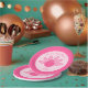 Este fantástico conjunto de placas de Chá de fraldas de papel apresenta uma imagem de arte digital de uma bonito menina rosa, Bebê, Turquia no Ação de Graças. A Turquia tem um corpo rosa brilhante com penas de cauda cor-de-rosa colando. Tem pernas cor-de-rosa pálidas e pálpebras rosa pálidas e bonito. Um design para celebrar uma menina, especialmente no Dia de Ação de Graças. Há texto personalizado para que você possa incluir uma mensagem.