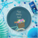 Crie chapas de papel personalizadas perfeitas para jogar festas para mulheres que gostam de cruzar a cidade de bicicleta. Esses suprimentos de festa mostram a bicicleta de uma dama em verde-menta com um pneu de cor creme e uma cesta na frente cheia de flores coloridas. O gráfico é definido em relação a um fundo verde escuro com sua mensagem acima em uma letra de script de cor creme.