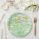 Placas em papel com fotografia fresca e de Verão, com uma coleção de margaridas selvagens com grandes centros amarelos a crescer num campo verde.