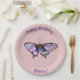 Arte de borboletas roxas e vermelhas desenhando placas de papel de fundo personalizadas.