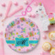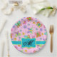 Vocês vão adorar entreter com estas placas de papel monograma com um padrão de arte feminina e romântico de borboletas rosa. Lindas borboletas brancas voam vertiginosamente sobre estas placas de papel personalizadas e na moda. Excelente de festas ou de bolo. Você pode mudar o monograma para um nome ou outras palavras no emblema e tira azul-turquesa. As lindas cores da lavanda, cor-de-rosa fuchsia, azul-turquesa, laranja e amarelo criam uma paleta de cor excelente sobre o fundo rosa bonito. Os elementos design do ícone da motif incluem também as flores amarelas, turquesas, lavandas e cor-de-rosa fuchsia e círculos reluzentes. Personalize para você mesmo ou para um presente. As borboletas são sempre populares e a boa sorte, assim como a tendência, contemporânea e na moda com o apelo do excelente. Totalmente personalizável. Coordenar com outros produtos da mesma cor ou com outras cores de fundo nesta loja.