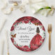 Prato De Papel Borboletas Douradas de Peony Vermelha Brilhante