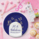 Este design elegante apresenta um quadro de arco branco em um pano de fundo azul marinho. O quadro é decorado com uma bonito arte de clipe de borboletas douradas. Cada texto é personalizável para suas necessidades.