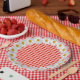 Prato De Papel Borda Branca De Margarida Em Gingham