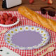 Fronteira de margarida branca de verão sobre fundo lavanda. A cor de fundo pode ser alterada.