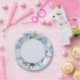 Chapas decorativas florais de cor azul-botânica, poeirentas e elegantes. Limpe-se perfeitamente para o seu dia especial.