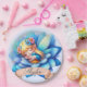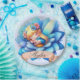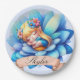 Bela, floral brilhante, doce sonho dormindo fada vestindo uma coroa de flores com fundo azul.