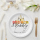 Chapas básicas mínimas e únicas de papel brunch para seu chá de panela. as placas de papel brunch são facilmente personalizáveis com seu nome em um estilo serif que inclui o Brunch e Bubble em script de caligrafia.