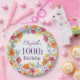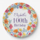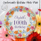 Cores divertidas e vibrantes adornam esta placa de papel personalizada para a sua 100ª Festa de aniversário. Estes florais foram criados com aquarela e irão com todos os tipos de esquemas de cores. Feliz comemoração!