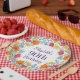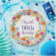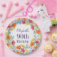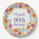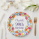 As cores divertidas e vibrantes adornam esta placa de papel personalizada para a sua Festa de aniversário 90 (ou 80, ou 100º, etc.). Estes florais foram criados com aquarela e irão com todos os tipos de esquemas de cores. Feliz comemoração!