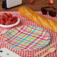 Prato De Papel Bright Rainbow Plaid Checkered Pattern