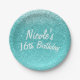 Pratos de Brilho Azul Mar Água Favor de Festa Glam. Personalize com qualquer texto para qualquer evento.