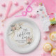 Prato De Papel Brilho Branco e Pessegueira Aquarela Floral