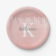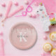 Prato De Papel Brilho Brilhante De Monograma Rosa Brilhante