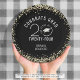 Chapas de papel personalizadas ou de festa de formatura aberta, com design moderno de tipografia na moda para o ano de aula, na sua escolha de cor (mostrada a preto), com uma borda falsa de confete com brilho dourado, FORMANDO CONGRATS e seu nome de formando. Escolha uma cor escolar ou uma cor do tema do partido coordenador na EDIT. ASSISTÊNCIA: Para obter ajuda com a modificação ou personalização do design, alteração de cor, redimensionamento, transferência do design para outro produto ou, se você quiser coordenar itens, entre em contato com o designer ANTES DE PEDIR através da guia MENSAGEM de bate-papo Zazzle abaixo ou envie um email para makeitaboutyoustore@gmail.com.