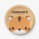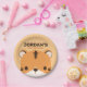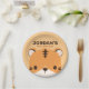 Uma design para animar o seu dia. Este design apresenta uma ilustração de desenho animado de tigre com nome personalizado no estilo de fonte sans serif moderno marrom em fundo laranja pastel. Festas de aniversário perfeitas para crianças.