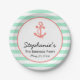 Prato De Papel Brisas Verdes com Âncora Rosa-Coral Aniversário