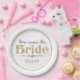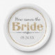 Estas placas festas glamourosas apresentam uma solteira, tema de noiva. A frase "Aqui vem a noiva" é impressa no centro, com "Noiva" impressa em letra dourada. Uma banda luxuosa de diamantes é impressa abaixo dela. Uma data de casamento de exemplo é impressa na parte inferior da qual você pode personalizar para incluir sua própria data ou outro texto personalizado.