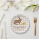 Prato De Papel Brown Hare And Carrots Happy Easter Beige Gingham
