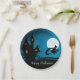 uma bruxa voando sobre sua vassoura sobre a lua de cheio com uma casa escura no fundo e um gato na cerca 100% Personalização. Clique no botão PERSONALIZAR para adicionar, mover, excluir, redimensionar ou alterar qualquer uma das fontes ou gráficos.