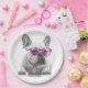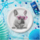Prato De Papel Buldogue francês com placa de papel de vidro rosa