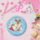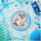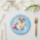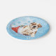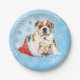 Celebre o feriado com um cachorrinho bonitinho sentado em um chapéu de Papai Noel em flocos de neve. Feliz Howlidays!