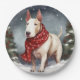 Prato De Papel Bull Terrier Dog no Natal da Neve