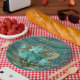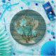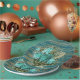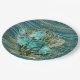 Colagem de arte digital dramática e luxuosa apresenta rosas pintados com cera e ouro em fundo padronizado inspirado em pavão.