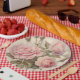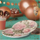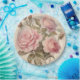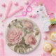 Renderização encantadora de um pequeno buquê de rosas e gemas cor-de-rosa num fundo pergaminho angustiado.