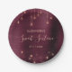 Luzes de cordas de brilho e Rosa Dourado brilham doces 16 pratos de aniversário. Este é o perfeito Sweet XVI Plate Set para uma elegante Burgundy e Rosa Dourada Sparkle XVI Festa de aniversário. Entre em contato com o designer para encontrar itens personalizados correspondentes.
