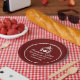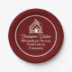 This professional realtor paper plate is custom made with your real estate company name under the modern white cursive script for an open house. This chic burgundy realty party decor features a house logo image for home builder or realty agent company marketing.