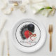Conjunto de oito placas de papel de 9" com uma imagem de cabaré de um ventilador de penas pretas, balões vermelho e preto e uma máscara vermelha. Ver pote de doces correspondente, espresso, caneca, frasco, arremessador, vidro alveolado, bule de chá e portas copos. Veja toda a coleção de Placas de Cancelamento na COMIDA/BEV | Seção pratos.