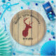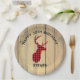 Festa de aniversário de papel com estilo rústico. Projetado com uma cabeça de veado com galhadas, feito de xadrez vermelha. As tábuas de madeira falsas para o fundo dão-lhe uma sensação estranha.