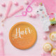 Salão de Cabelo / Cabeleireiro / Cabeleireira / Salão de Beleza / Artistas de Maquiagem / Estilistas / Planejadores de Casamento / Planejadores de Eventos / Consultores / Proprietários de Lojas / Fashionistas Prato de Papel Personalizado - Tesoura Dourada Falsa Moderna em Fundo Gradiente Laranja.