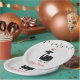 O novo design de Natal moderno e não tradicional para 2020 apresenta uma ilustração caprichosa de cabra negra com chapéu vermelho de Papai Noel, uma série de luzes de férias e um texto personalizável de "feriados felizes"