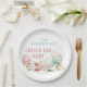 Esses pratos de papel apresentam ovos de Páscoa e flores pintados com aquarela com as palavras "Caça aos Ovos de Páscoa". Você pode personalizar com um nome.