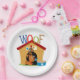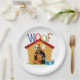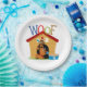 Um cachorro fofo com uma bola e um prato de comida, uma casa de cachorro, e texto colorido que lê WOOF em T-shirts, capuzes, canecas, bolsas, cartões, autocolantes, correntes-chave, botões, ímãs, conselhos de apagar a seco, capas e capas eletrônicas, placas de papel e guardanapos, e muitos outros itens de design de cães!