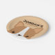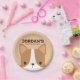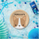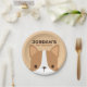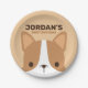 Uma design para animar o seu dia. Este design apresenta uma ilustração fofa de desenho animado de cão-corgi com nome personalizado no estilo de fonte serif sans moderno marrom sobre fundo castanho-claro. Festas de aniversário perfeitas para crianças.