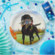 Estas placas de papel têm uma fotografia de um cão caçador.