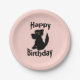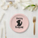 Prato De Papel Cachorro Negro Feliz Aniversário Rosa