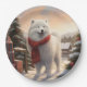 Prato De Papel Cachorro Samoyed no Natal da Neve